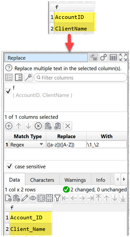 E.g. ‘AccountID’ to ‘Account_ID’