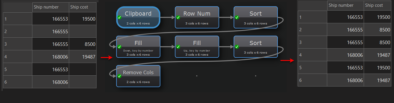 It is difficult to know what the constraints are from an example. Is it always sorted by ‘Shipment number’? Could there be multiple ‘Shipment cost’ values for 1 ‘Shipment number’? I guess the best we can do is state our assumptions.