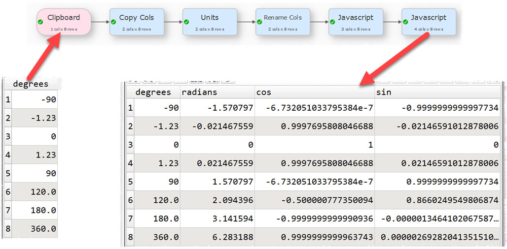 I have a table of angles in degrees and I want to calculate the sine and cosine of these angles. Can I do that in Easy Data Transform?