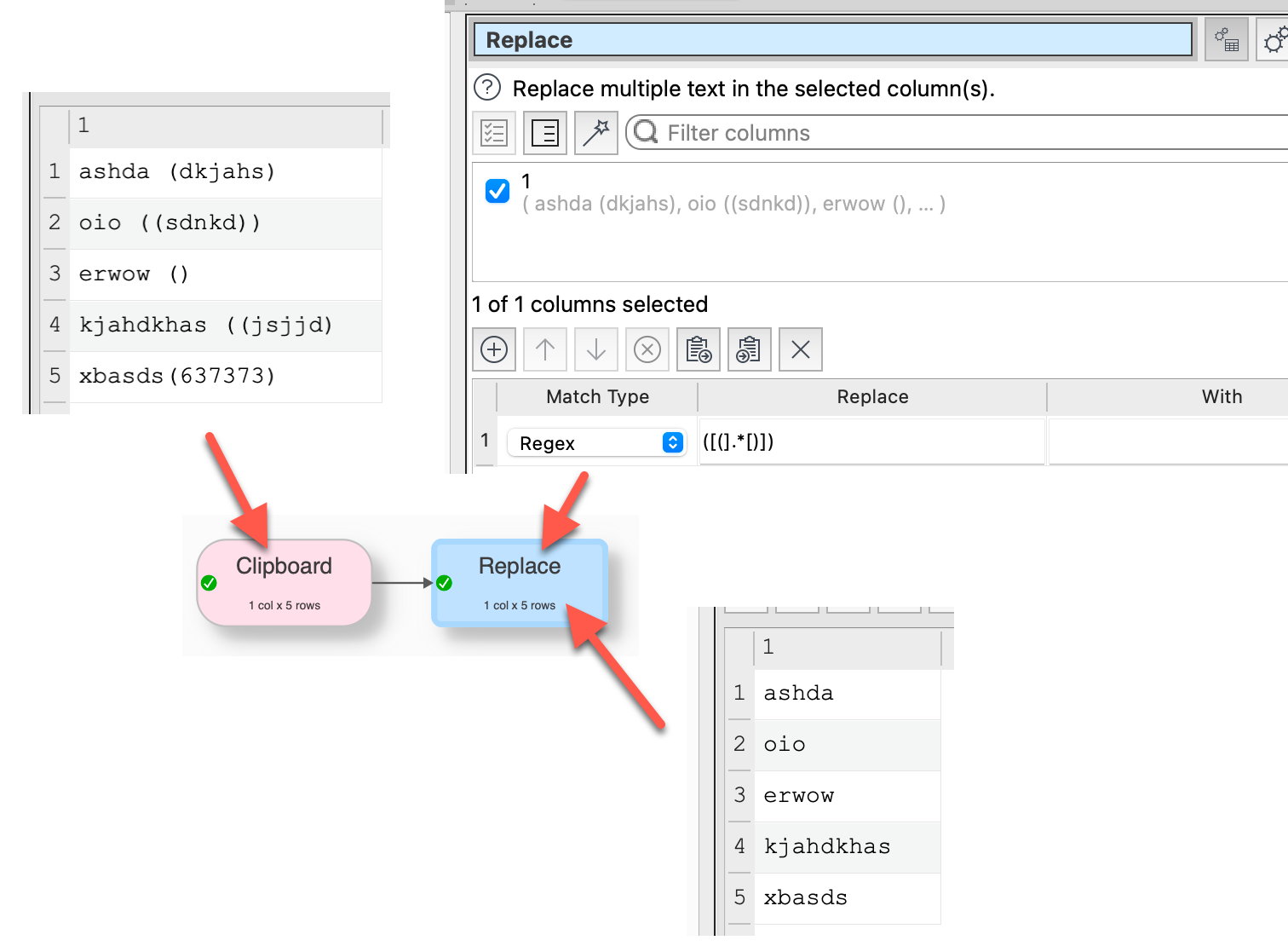 Is there a transform that can remove all of the text between brackets. The data looks like this:-