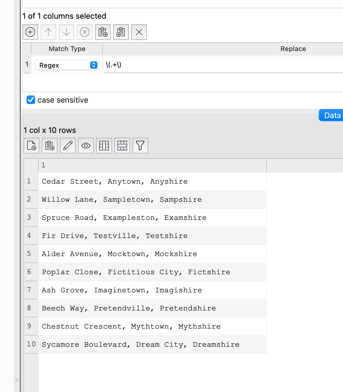 I then created a stack comprising this new filtered set plus the remaining records that did not end in a postcode within brackets.