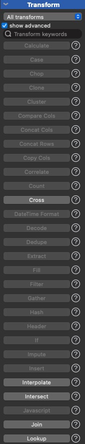 The early version of Easy Data Transform always greyed transform buttons when not available. The problem is that beginners don’t necessarily understand why a button is greyed out. Better for them, to click an ungreyed button and get a helpful message. So now button greying is off by default. But still available via ‘Preferences’.